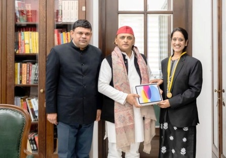 लखनऊ। हाल ही में किंग जॉर्ज चिकित्सा विश्वविद्यालय के दंत संकाय के कन्जर्वेटिव डेंन्टिस्ट्री एंड एंडोडॉन्टिक्स विषय में बेस्ट पोस्ट ग्रेजुएट स्टूडेंट अवॉर्ड के तहत गोल्ड मेडल से सम्मानित डॉ निहारिका सिंह राजपूत को समाजवादी पार्टी के राष्ट्रीय अध्यक्ष पूर्व मुख्यमंत्री अखिलेश यादव ने आईपैड देकर सम्मानित किया है।