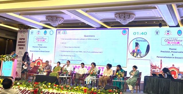 लखनऊ। संजय गांधी पीजीआई, लखनऊ में आयोजित एसजीपीजीआई ब्रेस्ट कोर्स 2026 और आईएईएस मिडकॉन के दूसरे दिन देश भर के प्रतिनिधियों की भारी भागीदारी देखी गई। वैज्ञानिक सत्रों में प्रारंभिक और स्थानीय रूप से एडवांस्ड स्तन कैंसर में निर्णय लेने पर ध्यान केंद्रित किया गया, जिसमें इष्टतम परिणामों को बनाए रखते हुए व्यक्तिगत रोगियों के लिए उपचार को अनुकूलित करने पर चर्चा हुई। विशेषज्ञों ने चुनिंदा मामलों में सर्जरी की सीमा को कम करने के उद्देश्य से विकसित हो रही रणनीतियों पर विचार-विमर्श किया, साथ ही जटिल परिस्थितियों में बहु-विषयक मूल्यांकन के महत्व पर भी चर्चा की।
