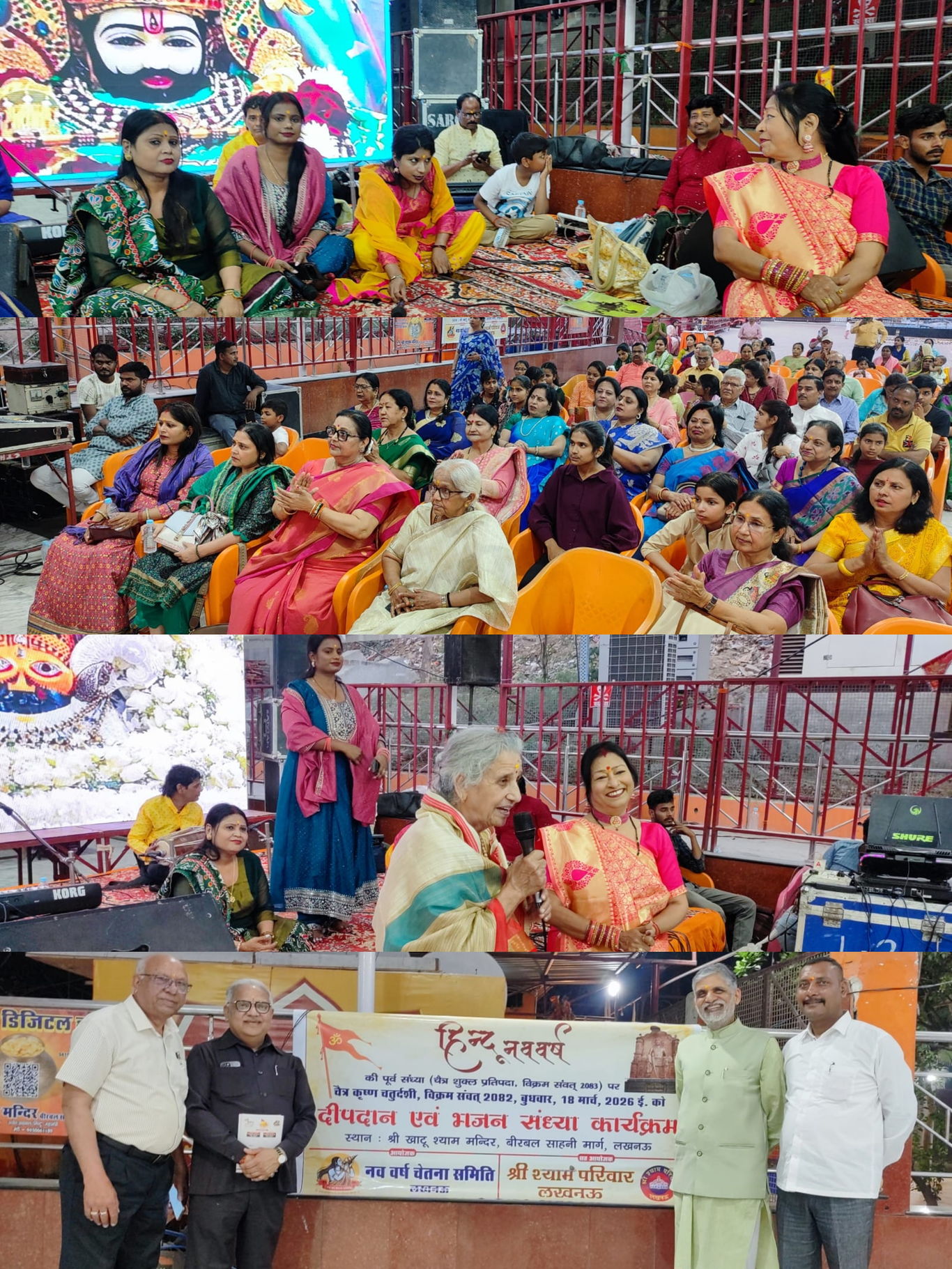 लखनऊ। आम जनमानस में भारतीय नववर्ष मनाने की चेतना पैदा करने को लेकर 17 वर्षों से कार्य कर रही नववर्ष चेतना समिति ने श्री खाटू श्याम परिवार के सहयोग से नवसंवत्सर विक्रम सम्वत 2083 की पूर्व संध्या पर 18 मार्च को यहां गोमती नदी के तट पर स्थित श्री खाटू श्याम मंदिर प्रांगण में भजन संध्या और दीपदान कार्यक्रम का आयोजन किया। विदा ले रहे विक्रम संवत 2082 के अंतिम सूर्यास्त होते ही किये गये दीपदान में प्रयोग किये गये दीपक गाय के शुद्ध गोबर से निर्मित किये गये थे।