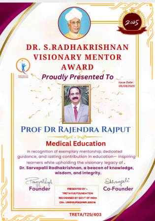 डॉ एस राधाकृष्णन विजनरी मेंटर अवार्ड 2025 से सम्मानित हुए प्रो राजेन्द्र राजपूत