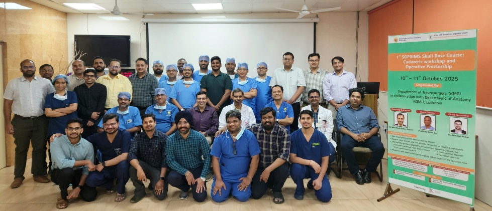 लखनऊ। संजय गांधी स्नातकोत्तर आयुर्विज्ञान संस्थान लखनऊ के न्यूरोसर्जरी विभाग ने किंग जॉर्ज मेडिकल यूनिवर्सिटी (केजीएमयू) के एनाटॉमी विभाग के सहयोग से 10-11 अक्टूबर, 2025 को पहला एसजीपीजीआई स्कल बेस कोर्स – कैडेवरिक वर्कशॉप और ऑपरेटिव प्रॉक्टरशिप सफलतापूर्वक आयोजित किया।
