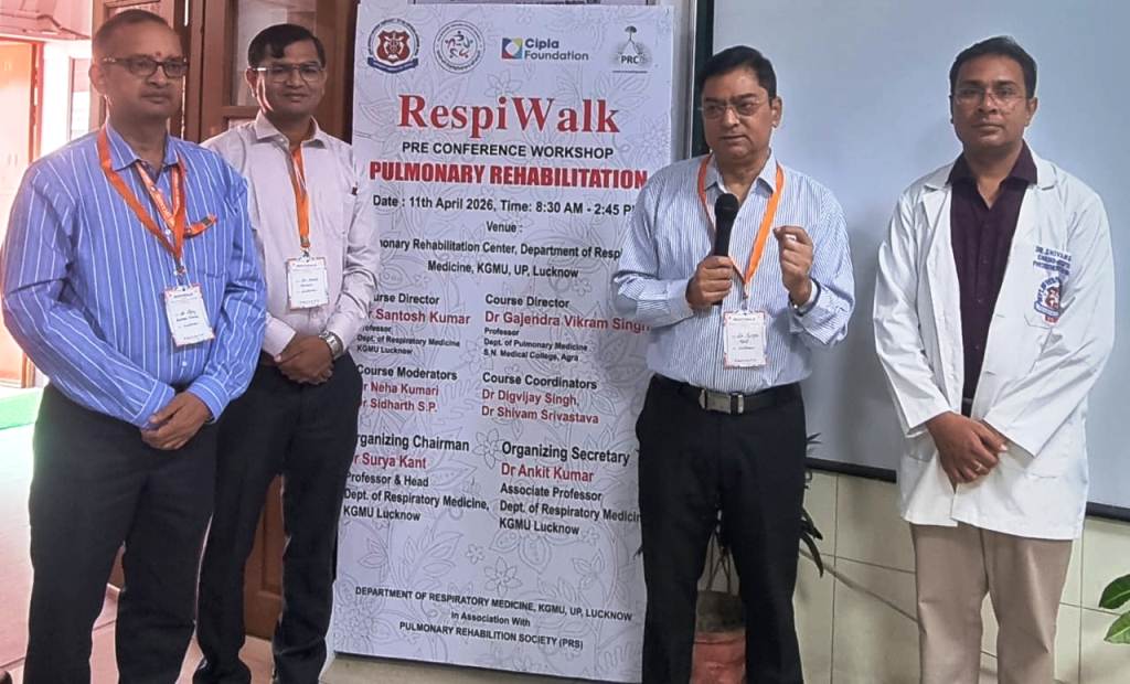 लखनऊ। किंग जॉर्ज चिकित्सा विश्वविद्यालय के रेस्पिरेटरी मेडिसिन विभाग द्वारा आयोजित रेस्पिवॉक कॉन्फ्रेंस का आज शानदार शुभारंभ हुआ। विभागाध्यक्ष व कार्यक्रम के मुख्य सूत्रधार, आयोजक डॉ. सूर्यकान्त ने बताया कि इस शैक्षणिक महाकुंभ में देशभर के विभिन्न एम्स एवं चिकित्सा संस्थानों से लगभग 300 पल्मोनोलॉजिस्ट, जनरल फिजिशियन, क्रिटिकल केयर विशेषज्ञ, पीजी रेजिडेंट्स एवं फिजियोथेरेपिस्ट ने प्रतिभाग कर कॉन्फ्रेंस को सफल बनाया।