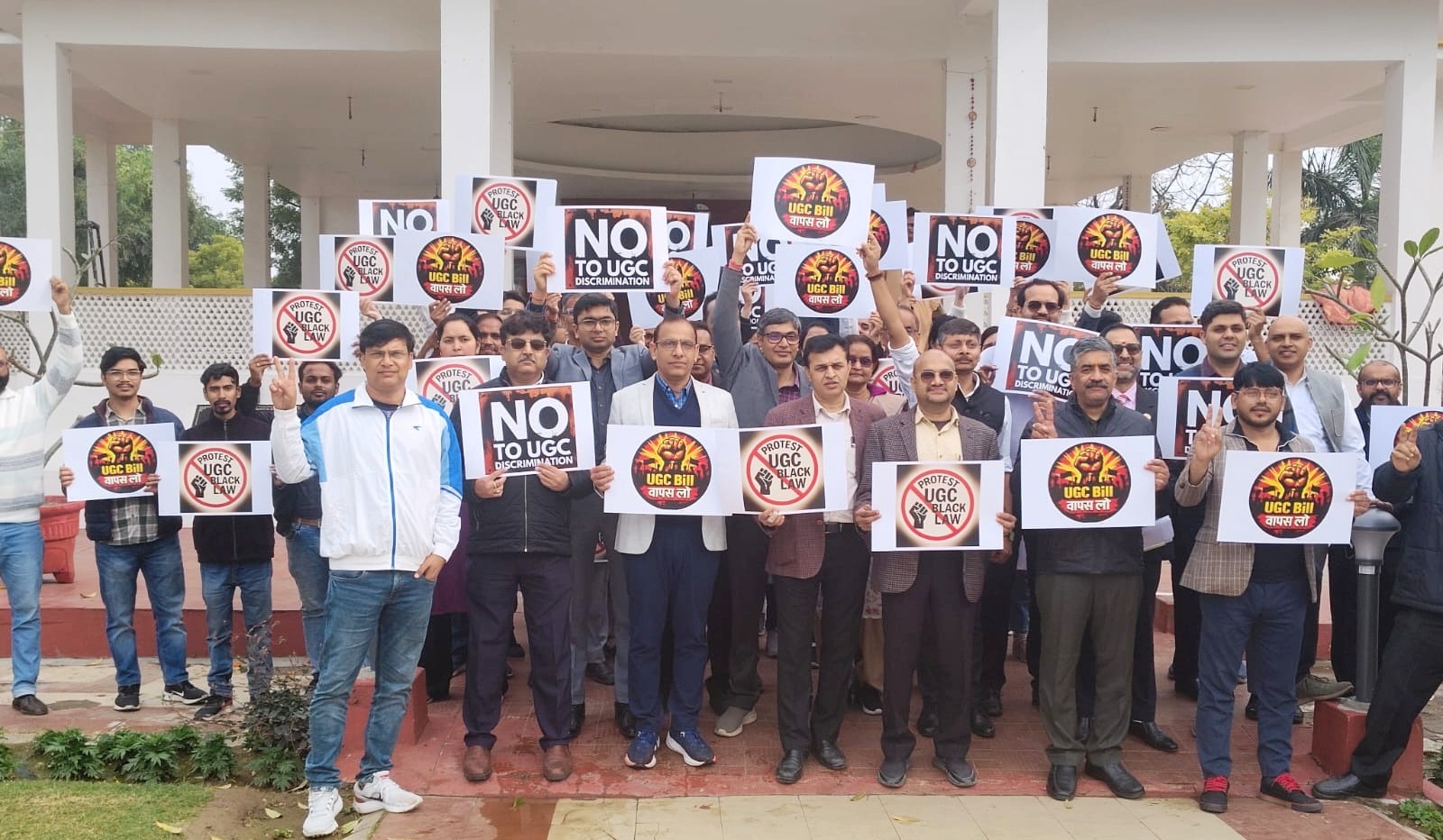 लखनऊ। विश्वविद्यालय अनुदान आयोग के नये नियमों को लेकर देश भर में विरोध तेज होता जा रहा है। इसके विरोध की आवाज बुधवार 28 जनवरी को किंग जॉर्ज चिकित्सा विश्वविद्यालय केजीएमयू से भी उठ गयी हैं। बहस और विरोध के बाद से केजीएमयू में अंदर ही अंदर सुलग रही विरोध की आग आज प्रदर्शन के रूप में सामने आयी है। सामान्य वर्ग की फैकल्टी, चिकित्सकों, कर्मचारियों ने आज विद्या की देवी सरस्वती के मंदिर प्रांगण में स्थित पार्क में बड़ी संख्या में इकट्ठा होकर नये नियमों पर विरोध जताया।